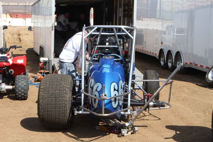 Dave Miller's blue # 66 gets ready fro Rickie Gaunt. Rickie was in 13th at the finish.