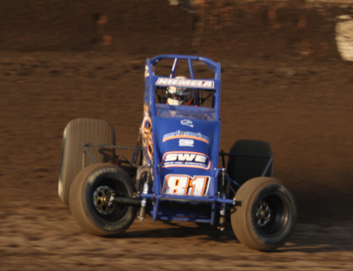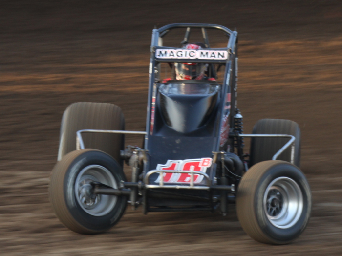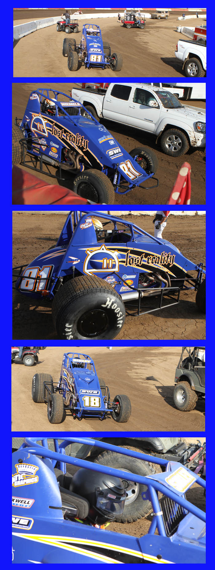 Matt Stewart has been off riding two wheel monsters for a while after shutting down his sprint car career a few years ago. After a serious arm injury he reconsidered coming back to sprints. This "new" car is a family affair with his mom and dad Dennis & Colette and Ed and ALexandria McWilliams. Ed has retired from driving but wants to stay involved. Matt had some early problems in his heat and was done for the night.
