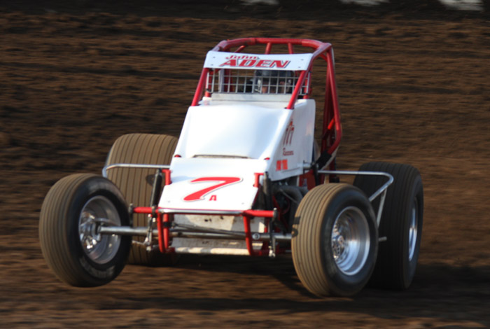 John Aden, # 7a, went out before a lap was done in the main and Ed Schwartz won the Senior main.