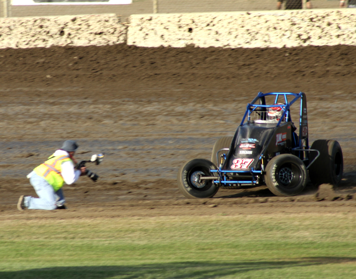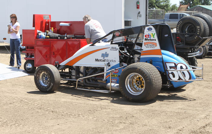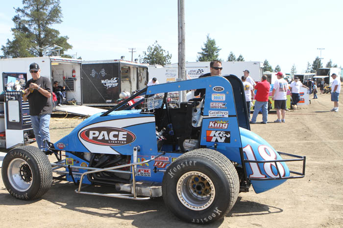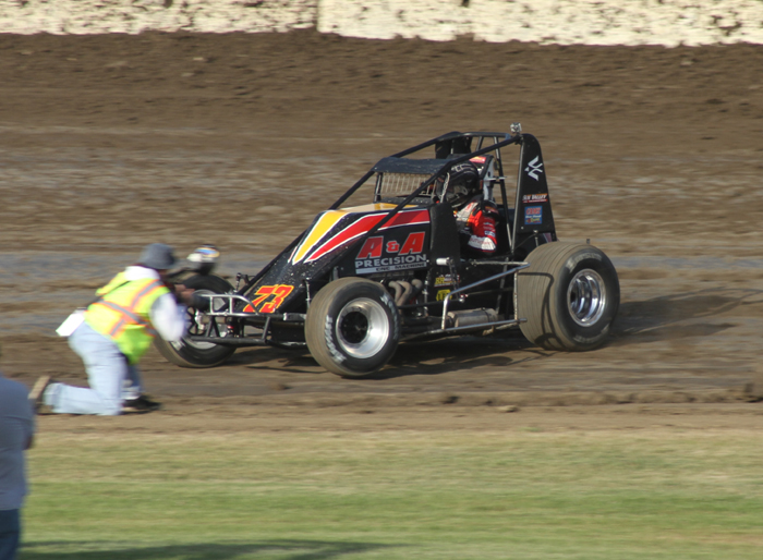 Shane Golobic drove this car and was to start the main, but a wheel came off on the line-up and he was done.