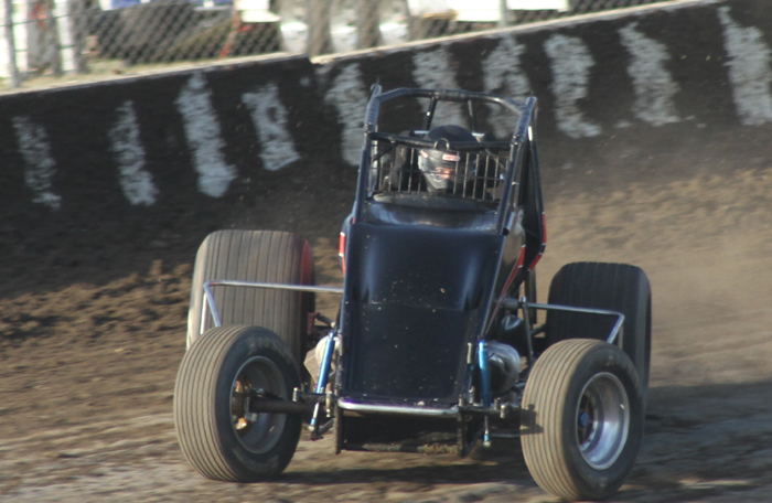 The day started fro Danny Sheridan's little blue bugger. It ended for him with a flat on the opening lap of the feature with no time to fix it.