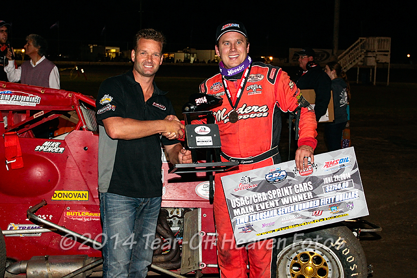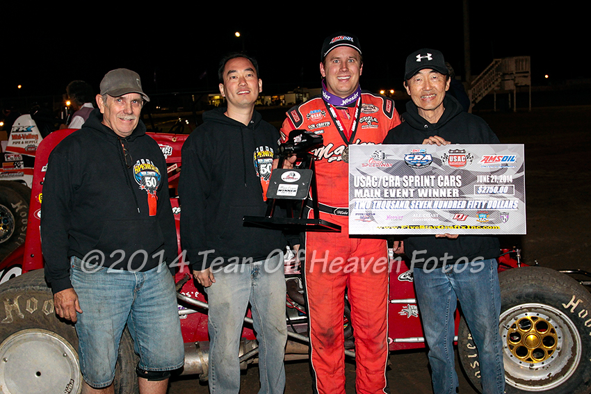 Mike Spencer with father Mike Sr plus Gary and Michael Tanaka in winners circle.