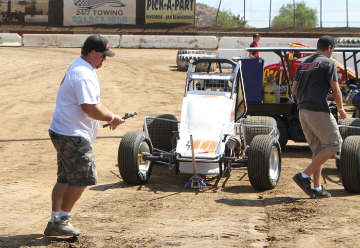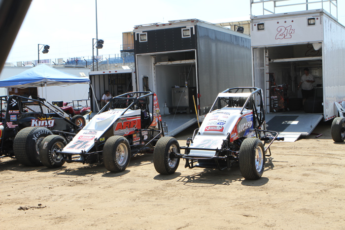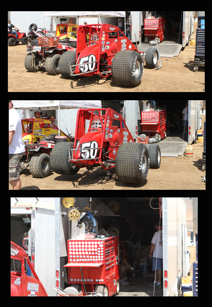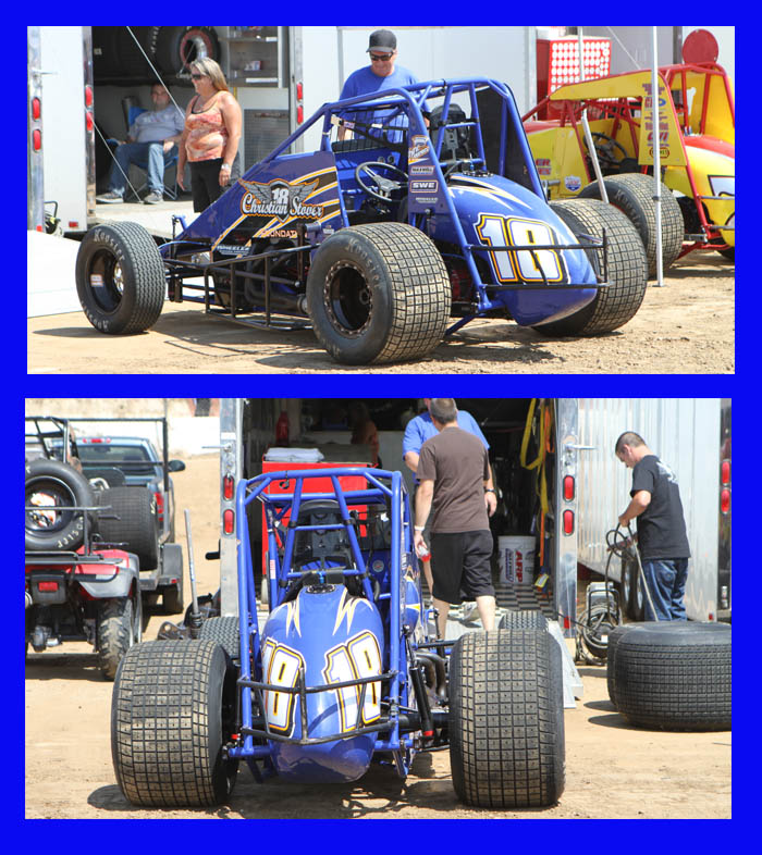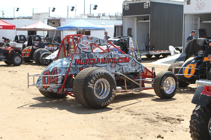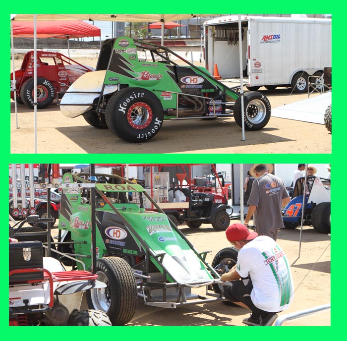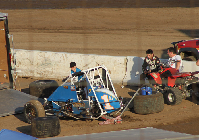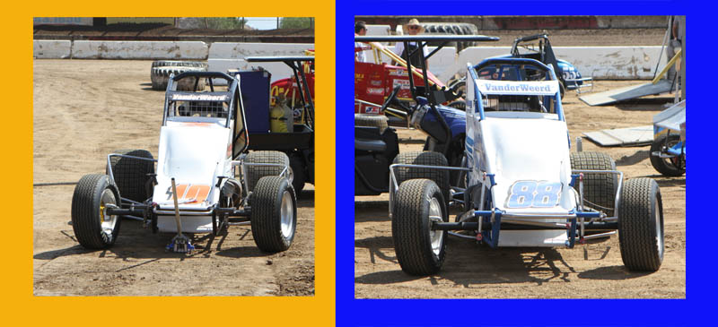 The Michnowicz cars ready for the lightniong sprint main. Bobby won while son Kevin ran up to second then nailed the wall, this ending the life of this car. He was a little sore!