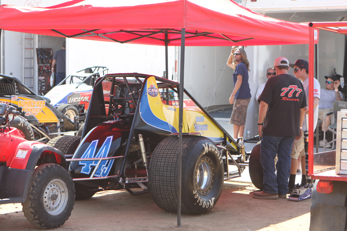 Activity near the concession stand before the pit meeting.