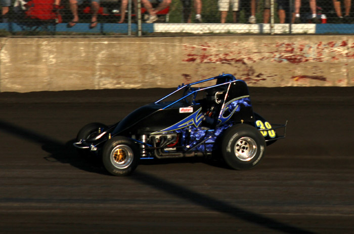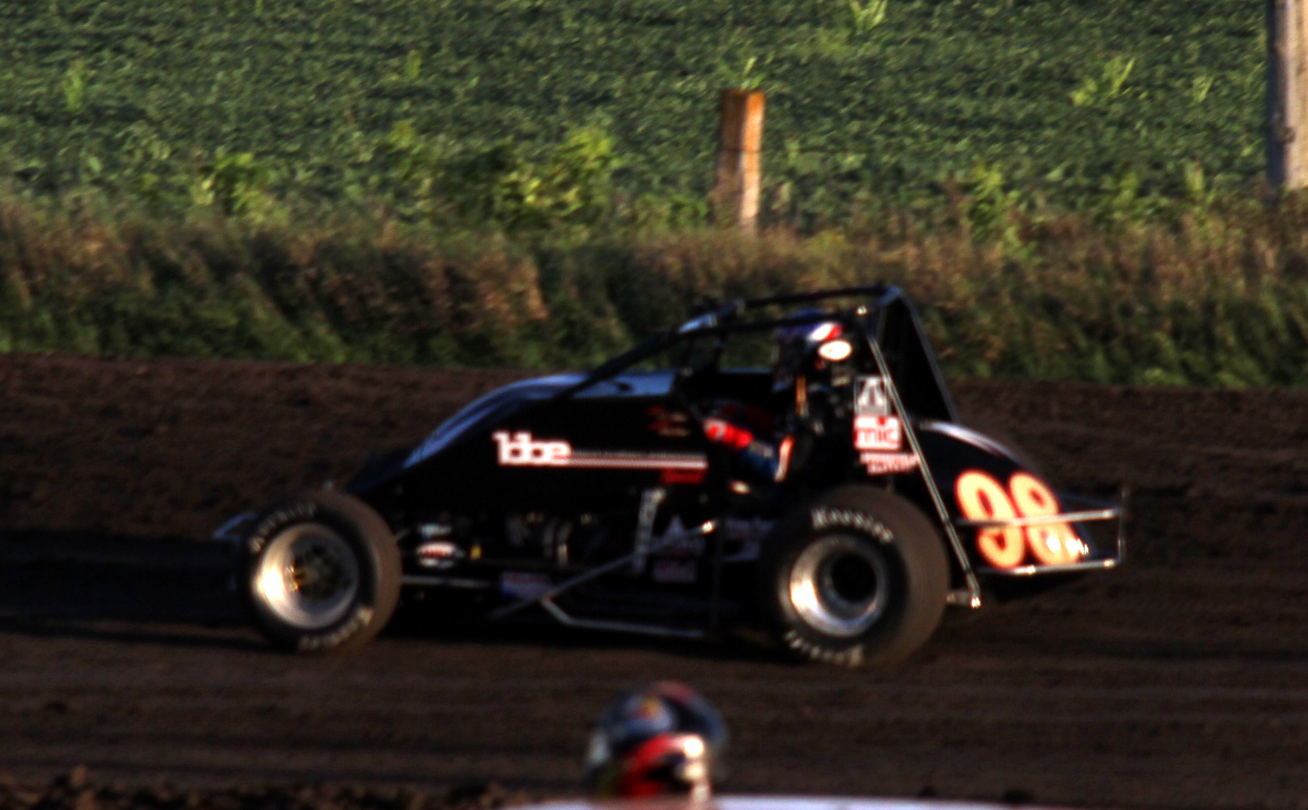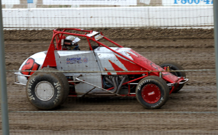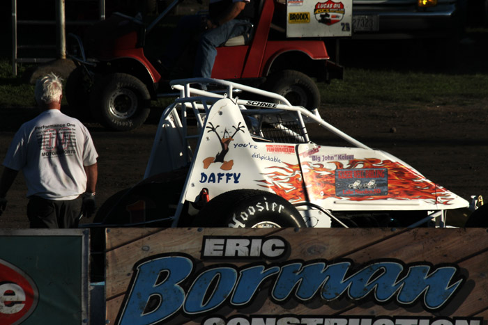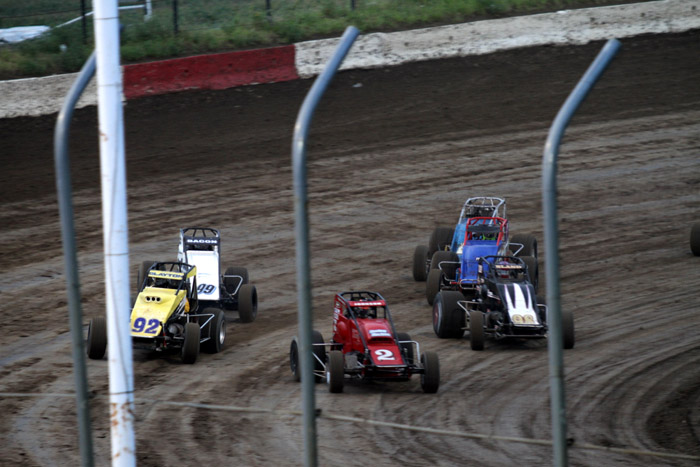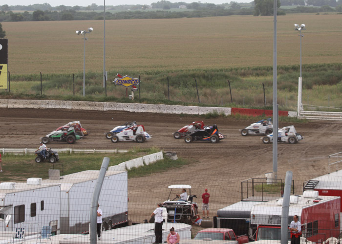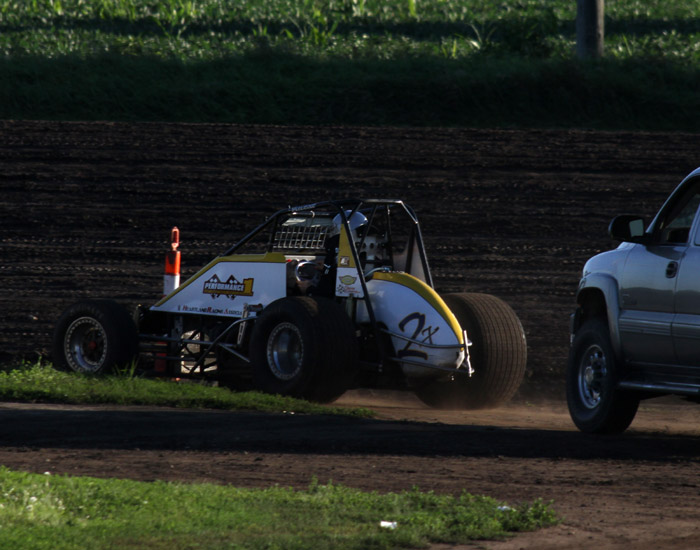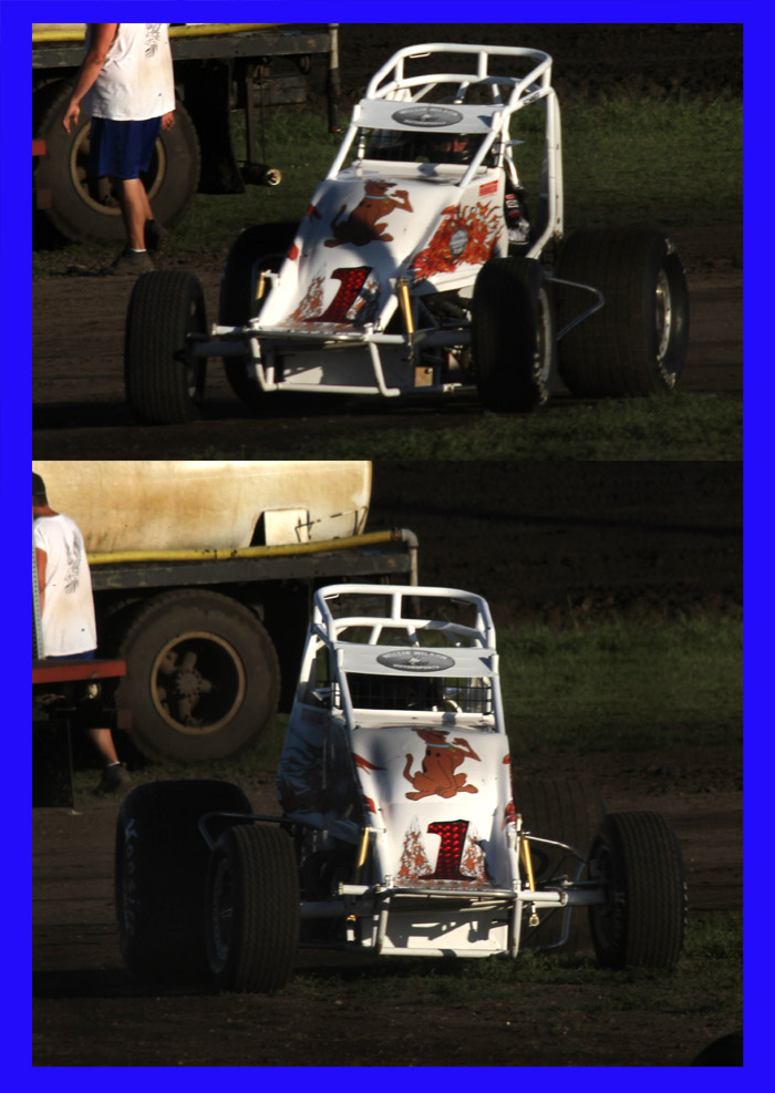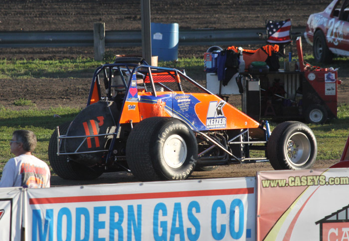 This was the first heat in what should have been the start of a good race. That black car with the orange strip ends up in the wall and Jack Dover went to the hospital where he was still in intensive care a few days later.