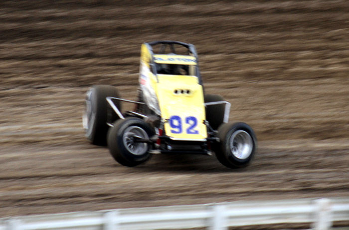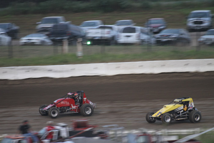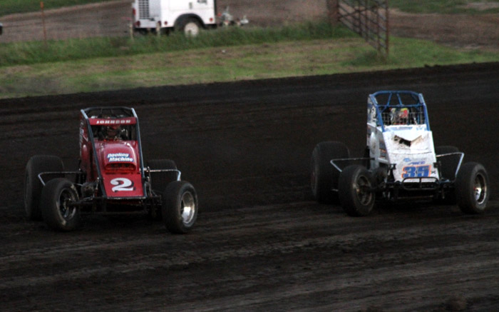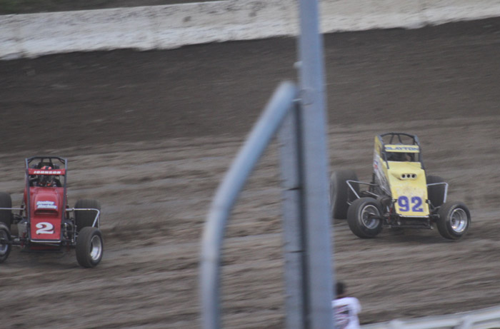 Kyle Larson leads Deron CLayton.