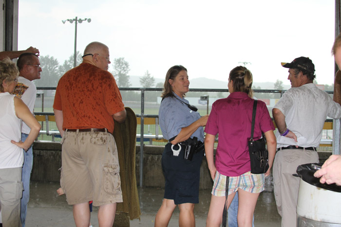 Waiting out the rain on Friday from inside the concession area.