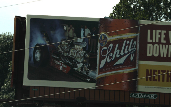 A beer sign with a 60's gas dragster the Freight Train featured?