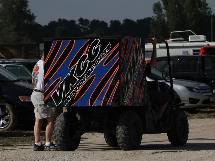 Bryan Clauson riding around in the Hockett 4 wheeler.