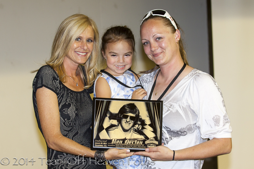 Kim Hawkins and Ron Horton family member accepting the HoF induction posthumously)