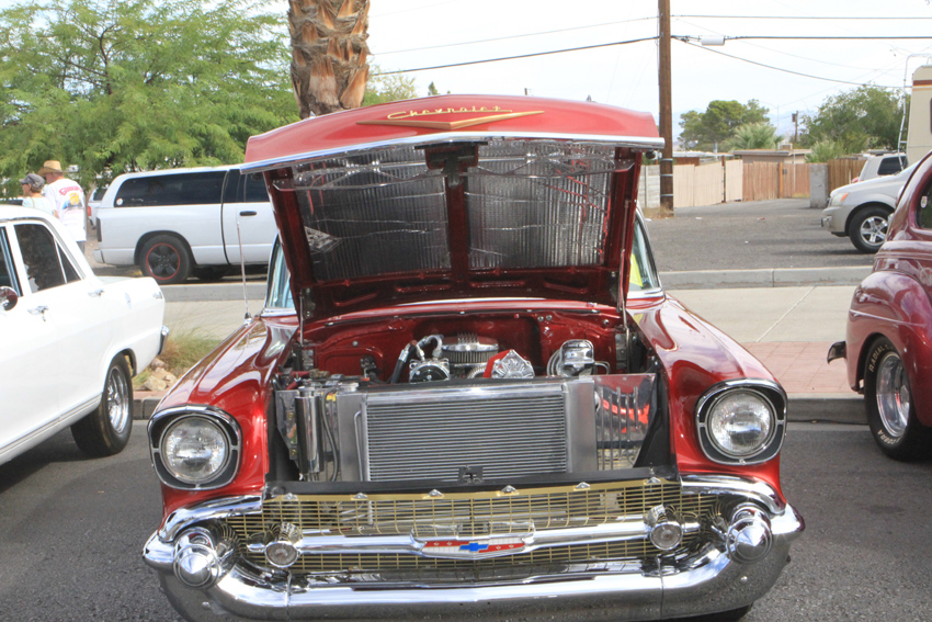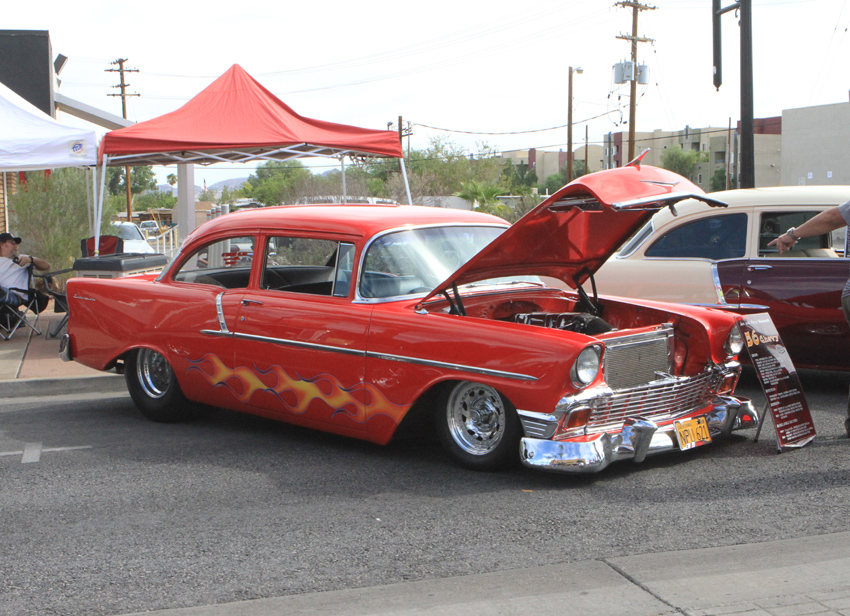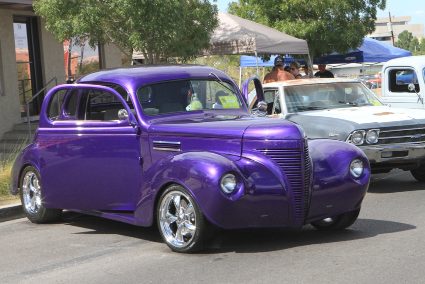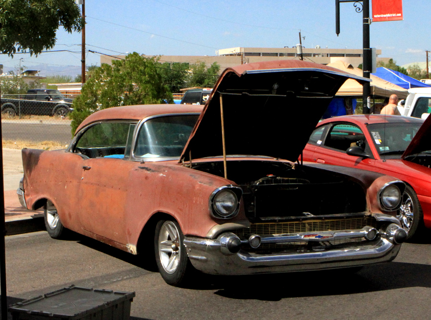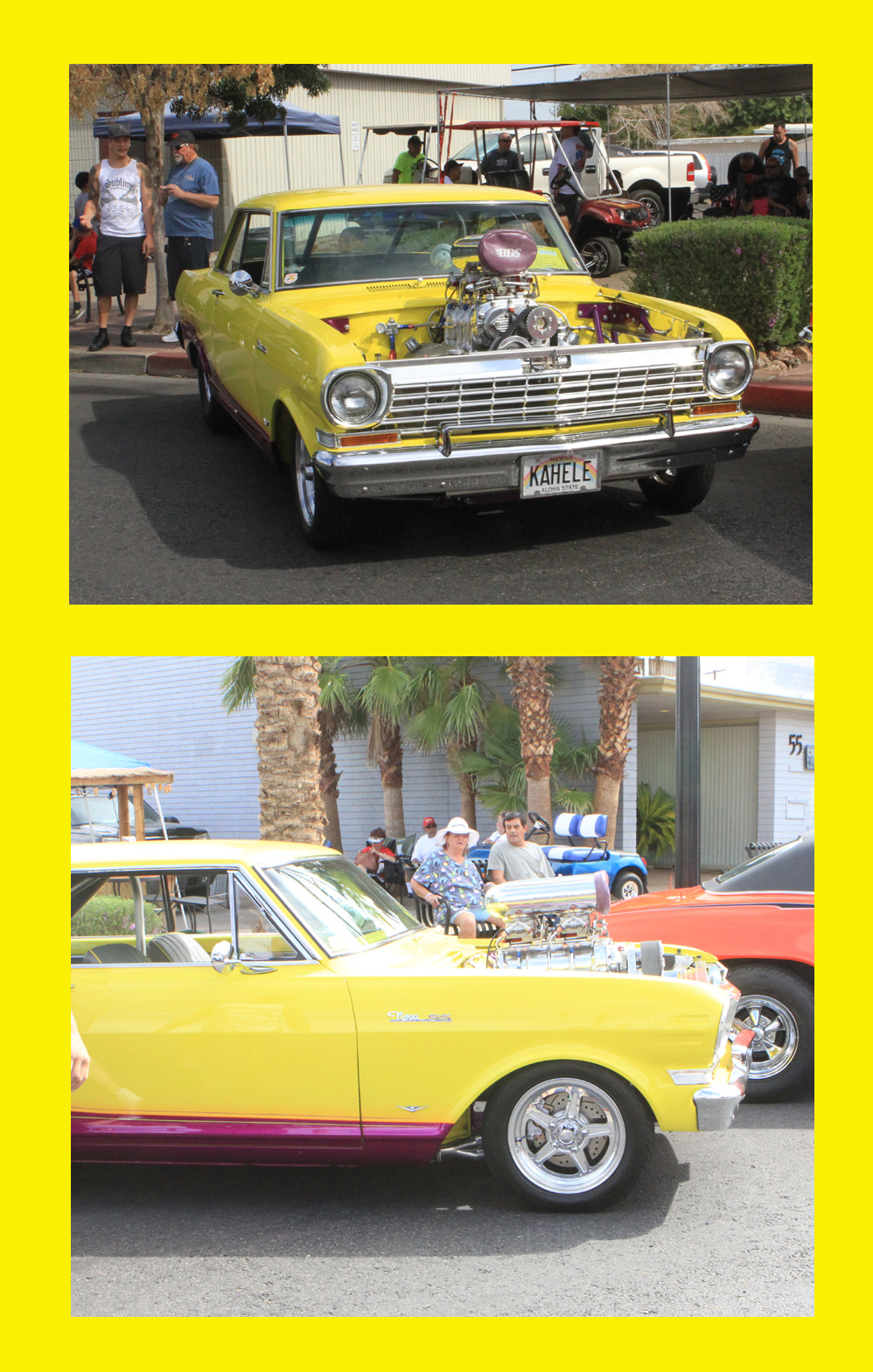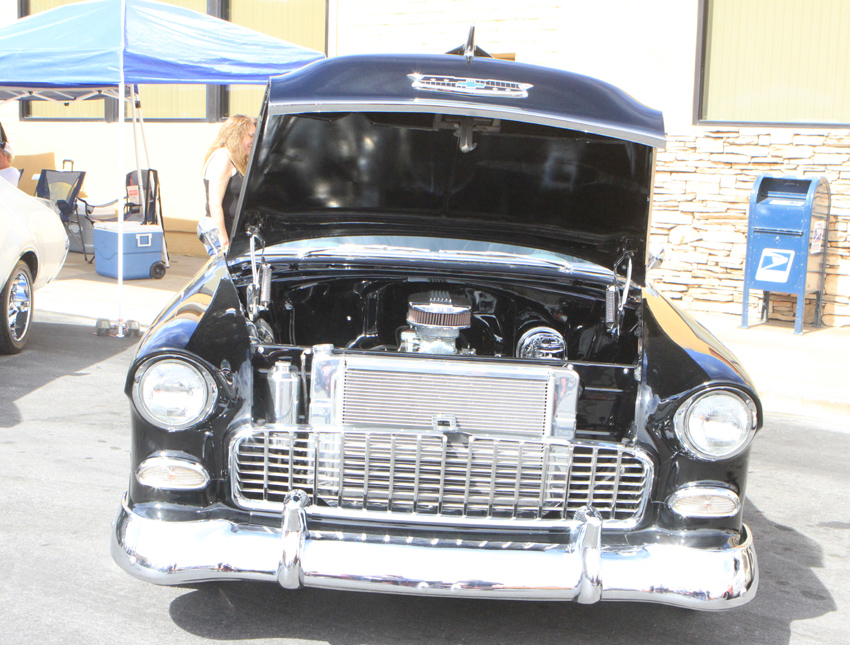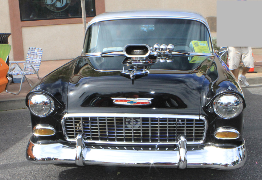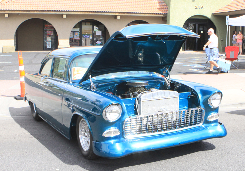 The sun and me didn't do justice to this blue 55 Chev. It was my choice for best looking hot rod.