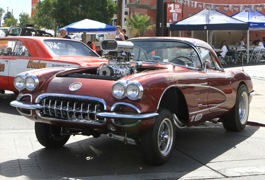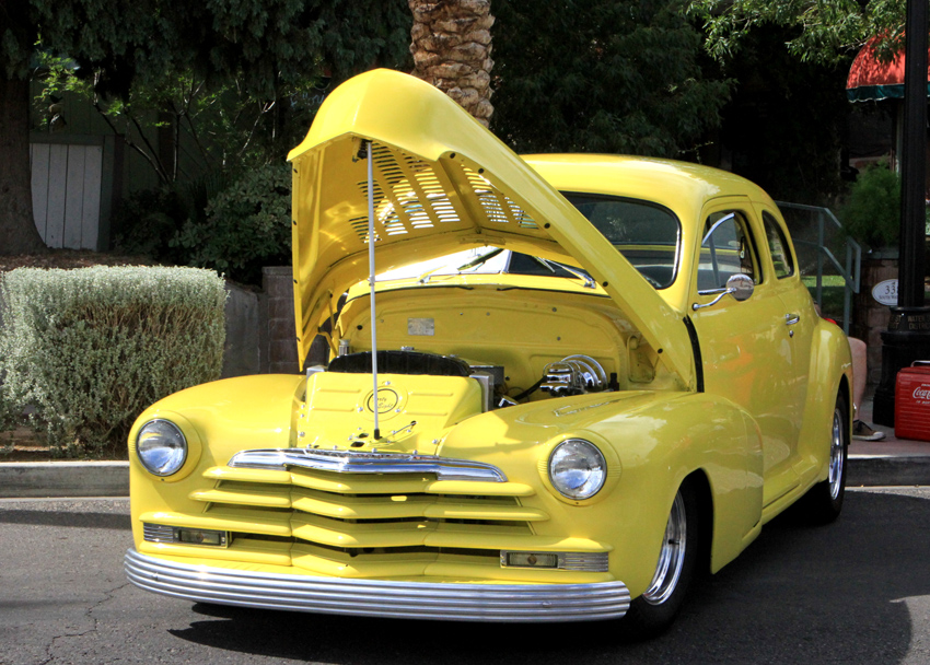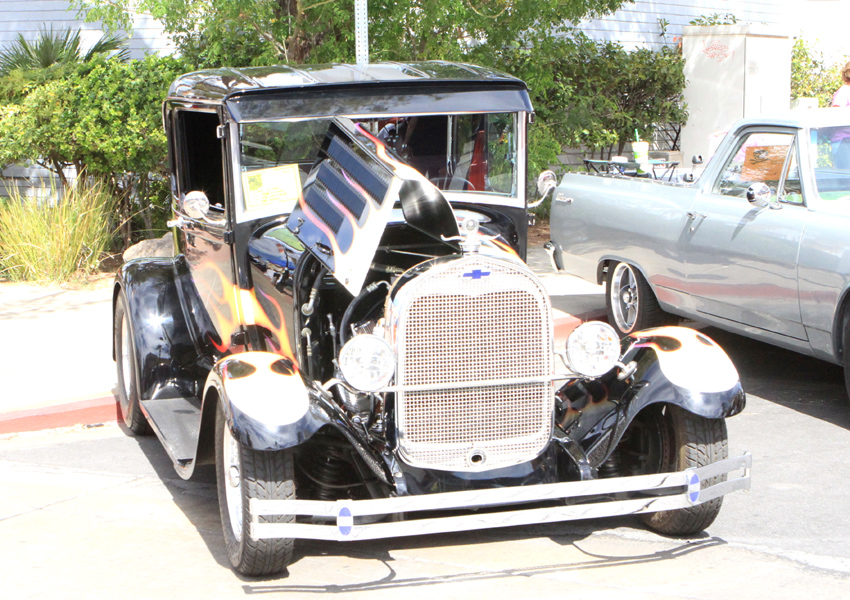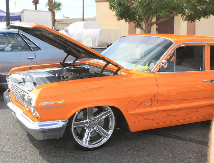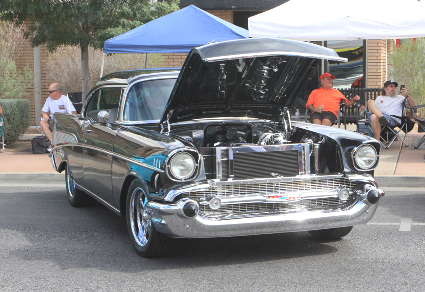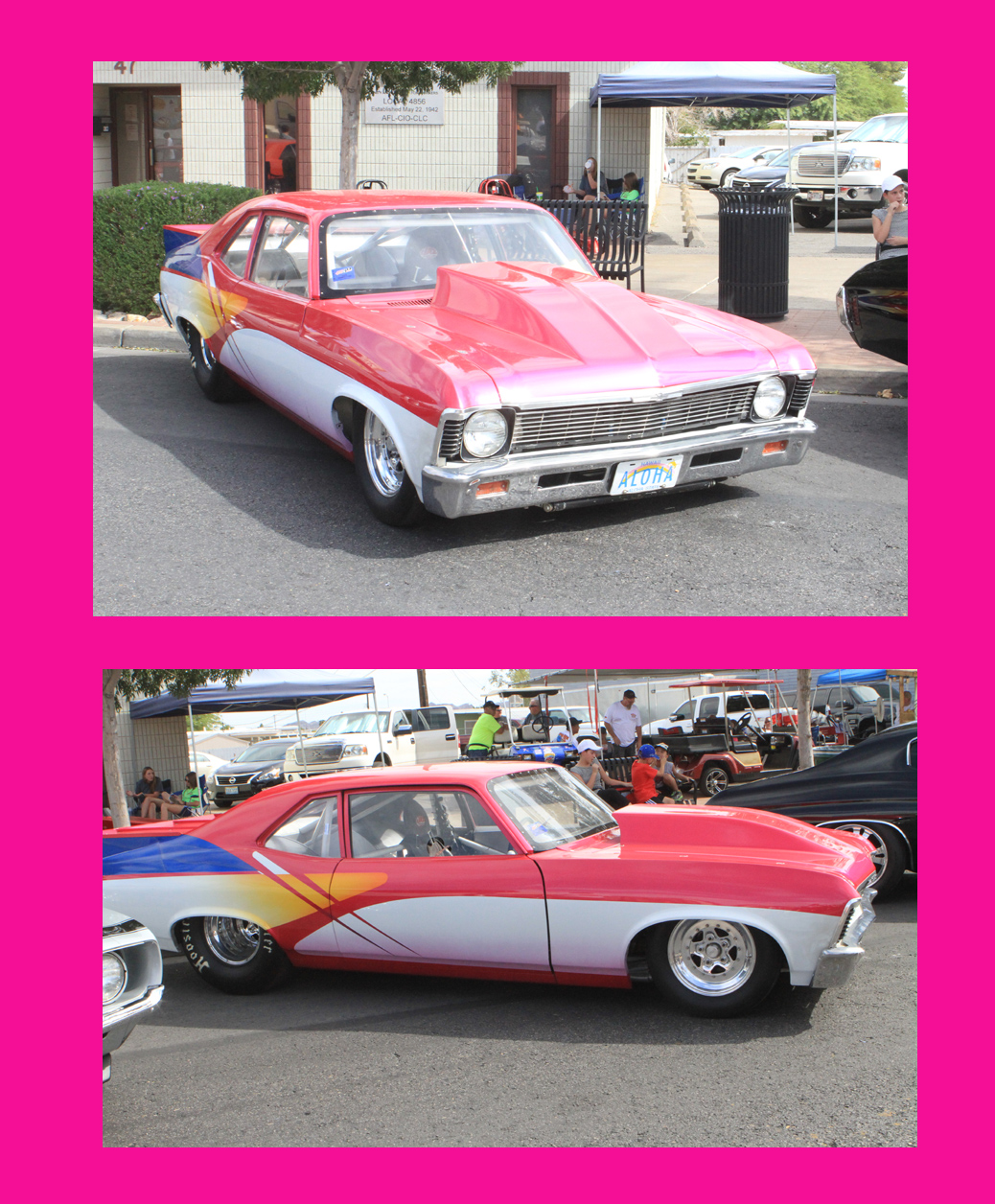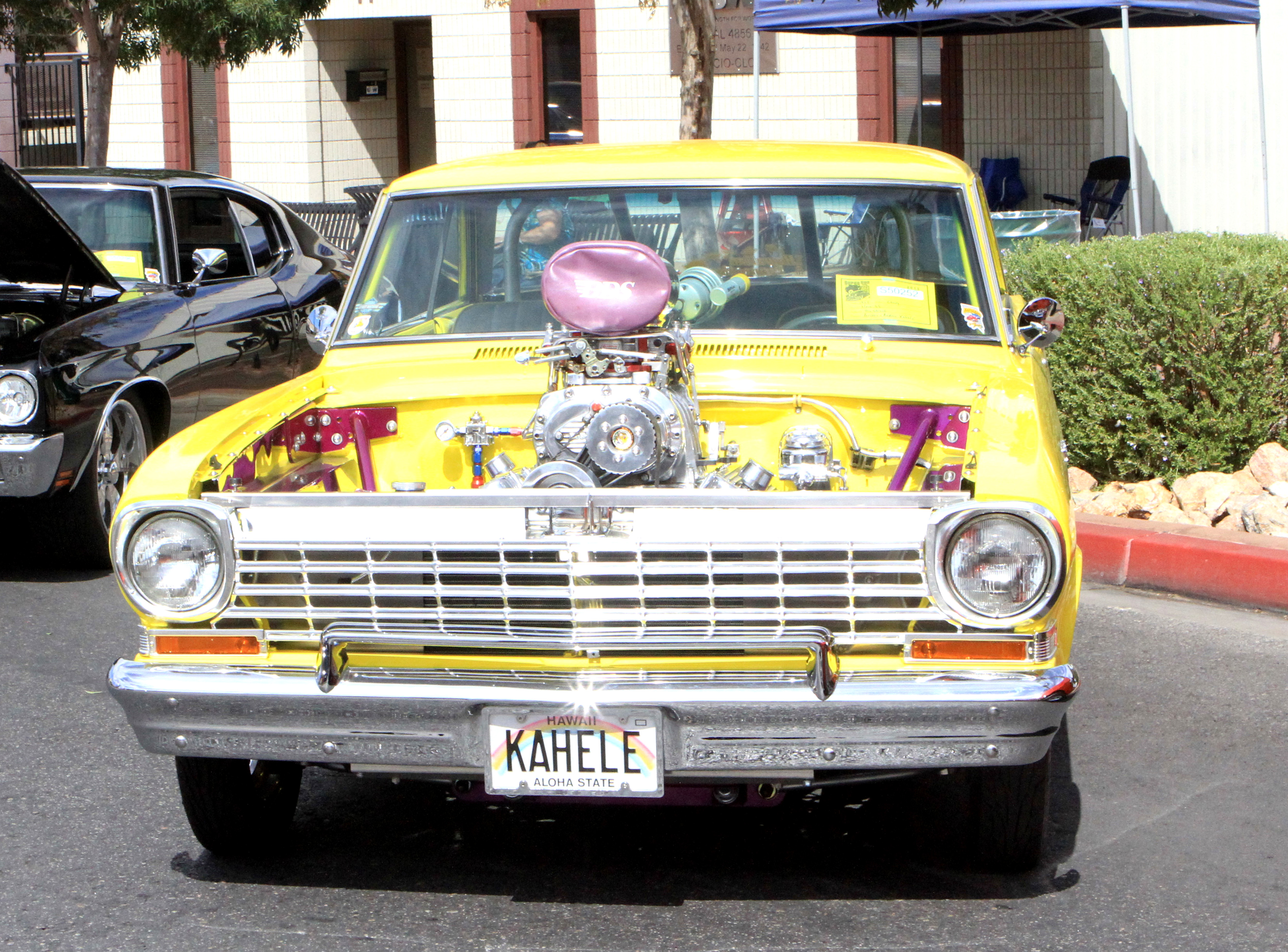 The sun and me didn't do justice to this blue 55 Chev. It was my choice for best looking hot rod.
