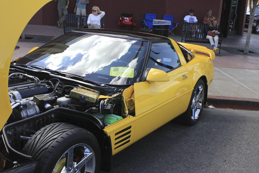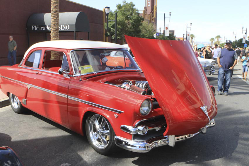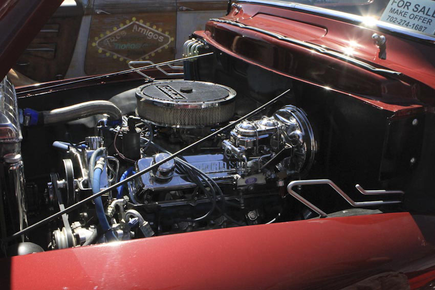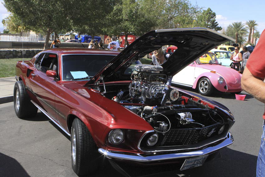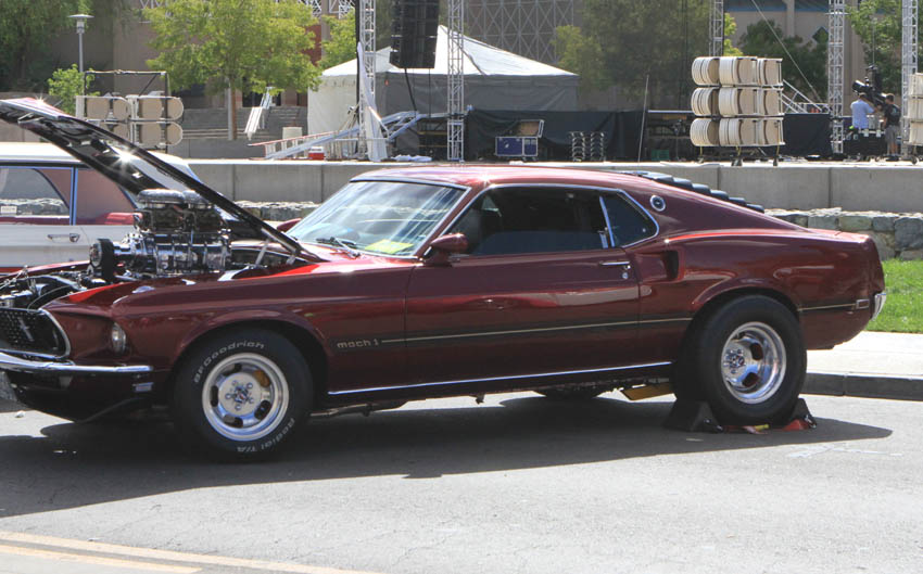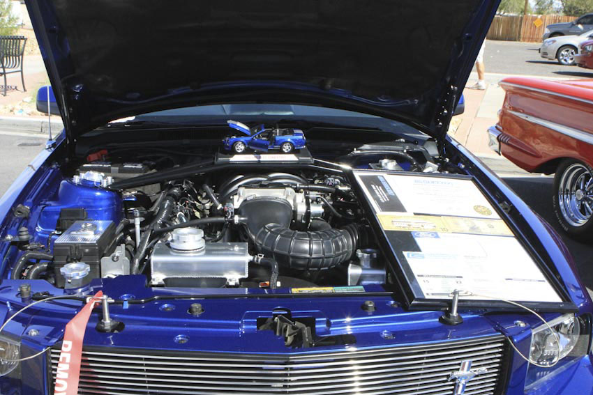 Under the hood of a Mustang was some kind of air handler? Not a supercharger or turbo I think. Note the model under there on top of the motor.