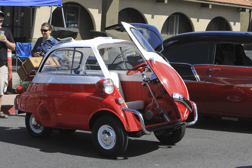 The Italians made this Isetta for chuckles. Wpuld you believe this "Smart Car" is over 50 years old? And you climb in the front? There was a show car with 4 aircraft engines mated up to one of these in the 60's.