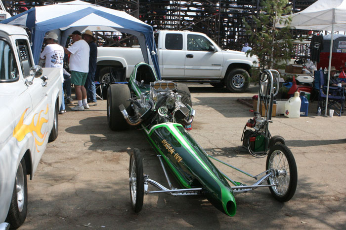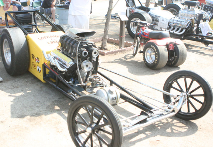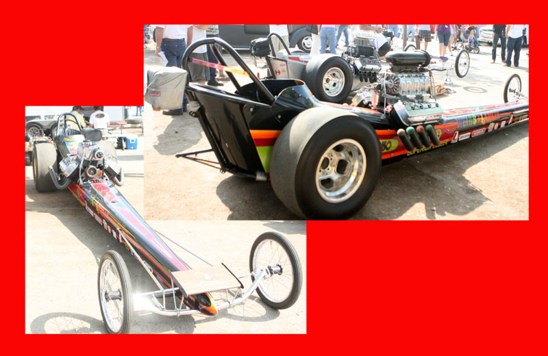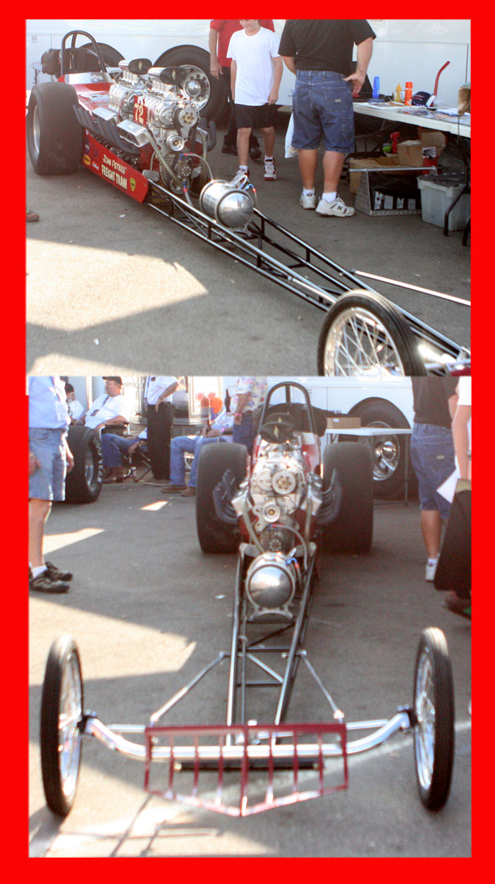 The typical fuel dragster of the 60's without a full body looked like this. Open chassied front end and some skin around the driver. There were a lot of these as they wanted to go fast and win without paying for the artistry of someone like Hanna to creat the sleek skins.