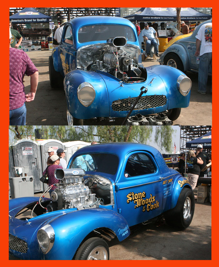 One of the fuel alterds that were so popular, and still are when they come run. With a 92 inch wheelbase and blown motors on nitro, what a gas! Ratican, Jackson and Stearns were their names.