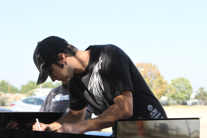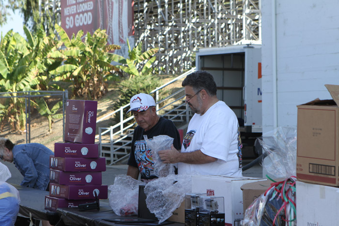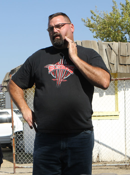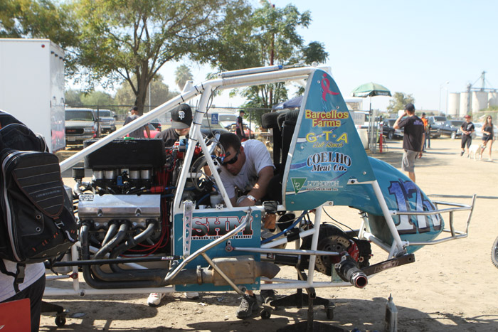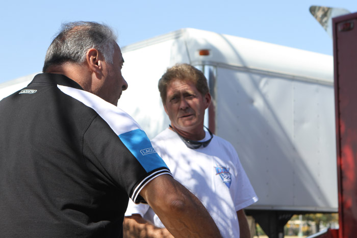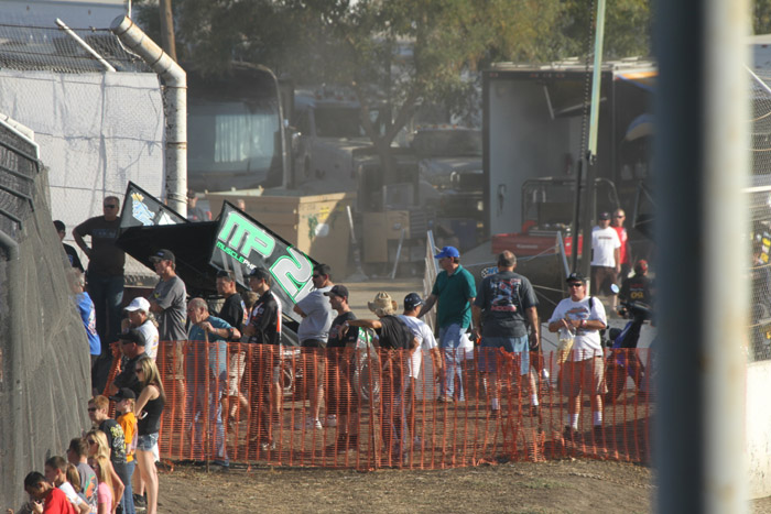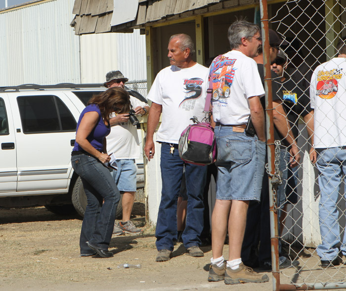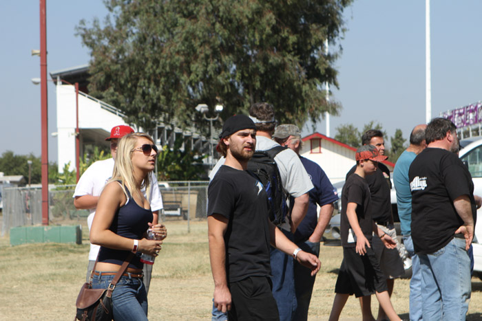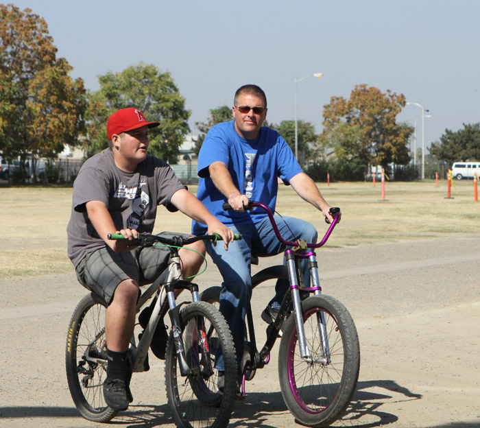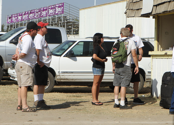 The Kerns family outing biking to the races. Chris and his son Blade up to something?