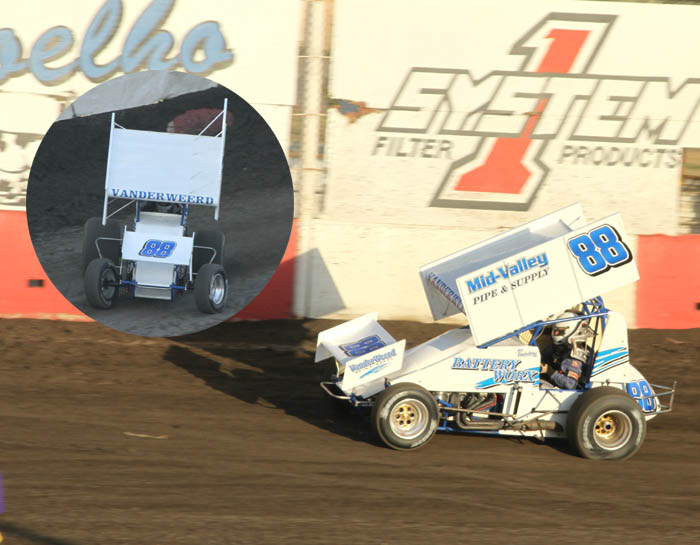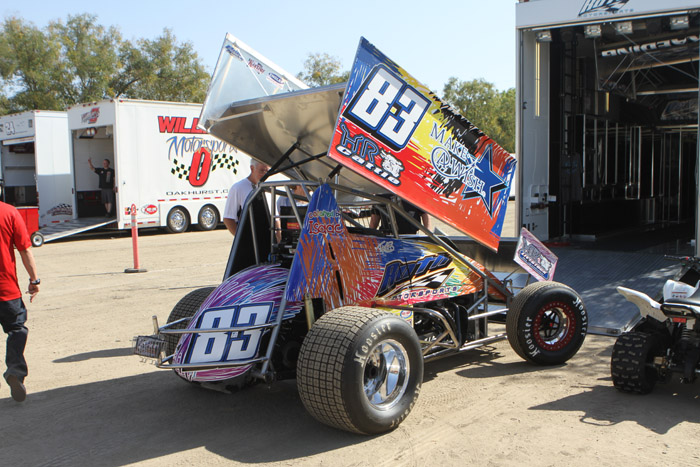 This car was designed by a Make A Wish kid who wanted to paint a sprint car. He colored a sprint car in a coloring book and Peter Murphy duplicated his work on this sprint car driven by Tim Kaeding.
