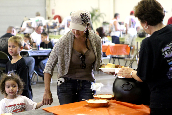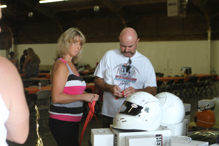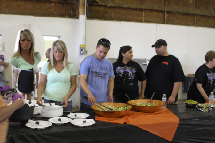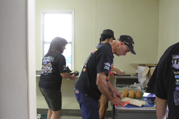 The Trophy Cup Wonder Workers really have their hands full as they are busy from the moment the Friday morning sun comes up until the group meets for a late night snack at IHOP after it was all done on Saturday night. They do it all and begin by getting the large bulding by decorating it and then monitor the auction items, move them to the taco feed, help serve the tacos, clean up and tear down the decorations and put up new ones for the spaghetti feed on Saturday at noon. They get the spaghetti ready as Ray Williams is the cook, and everyone else makes the salad, warms the bread and gets to serving the crowd when they come in. Then clean up and continue on thru the race and until all auction items are claimed and the loading up is done. They are busy. There are a lot of family and close friends that do this every year and for what... Make a Wish and the racers.
