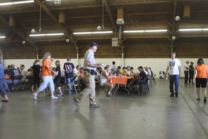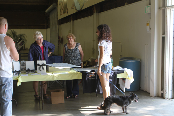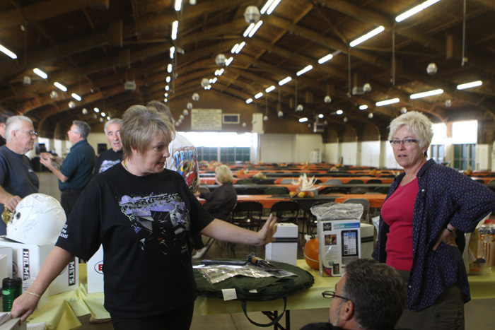 The auction table started behind the grandstands on Friday, then was moved inside for the Taco feed and the Spaghetti feed, then returned behind the gandstands to finish up.