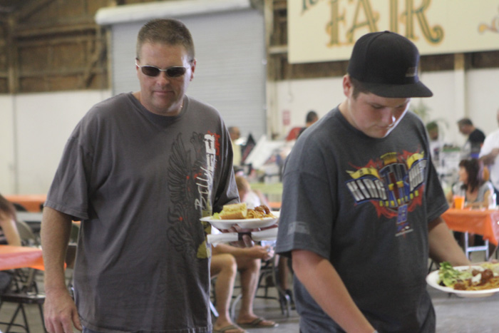Howard Kaeding, the first of three generations of Kaeding racers, shows me the meatballs were good.