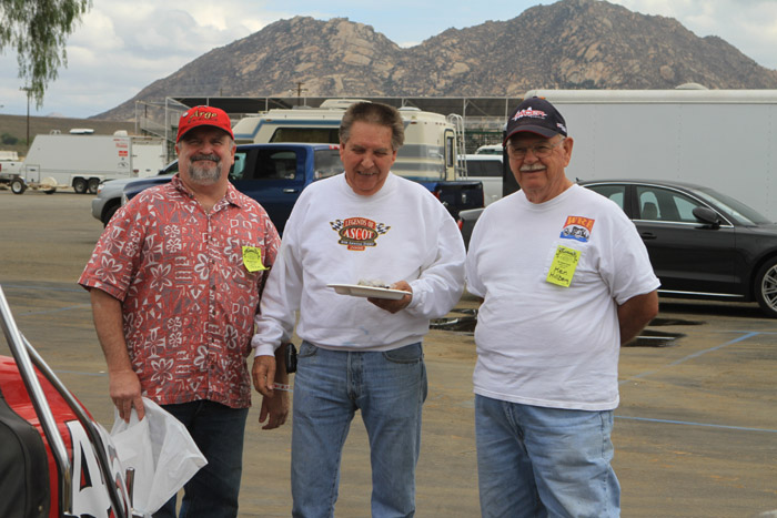Don Weaver and Parnelli Jones having fun with Chris Holt.