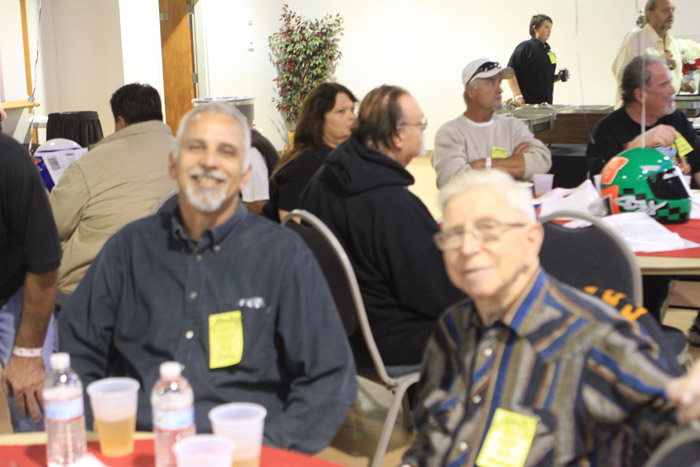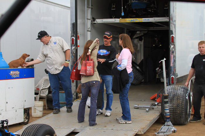 The busy Kittle pit area. Dennis playing with Gary's dog, Sharon and Jeff talking with Shelby and Jimbo looking for work.