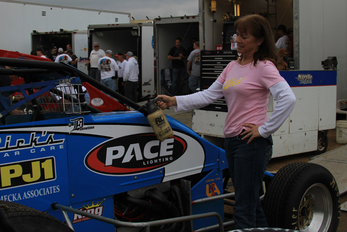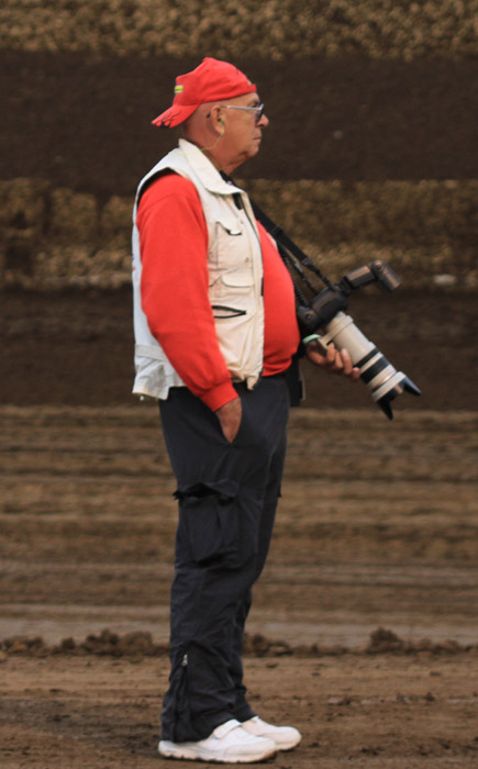 Does this man look lonely? After working all morning at the Legends, he did his normal night routine at the race.