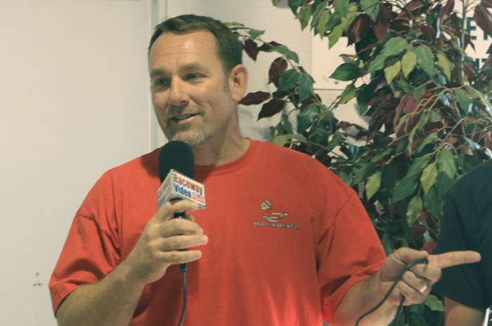 Cary Agajanian talks with the crowd while brother JC Jr waits his turn.