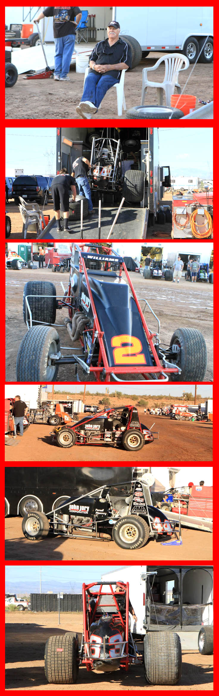 The Williams crew unloads the cars and then the cars get set-up and they go racing whie the Godfather Jack enjoys it all. He is proud of his team and is always there to share the fun with them.
