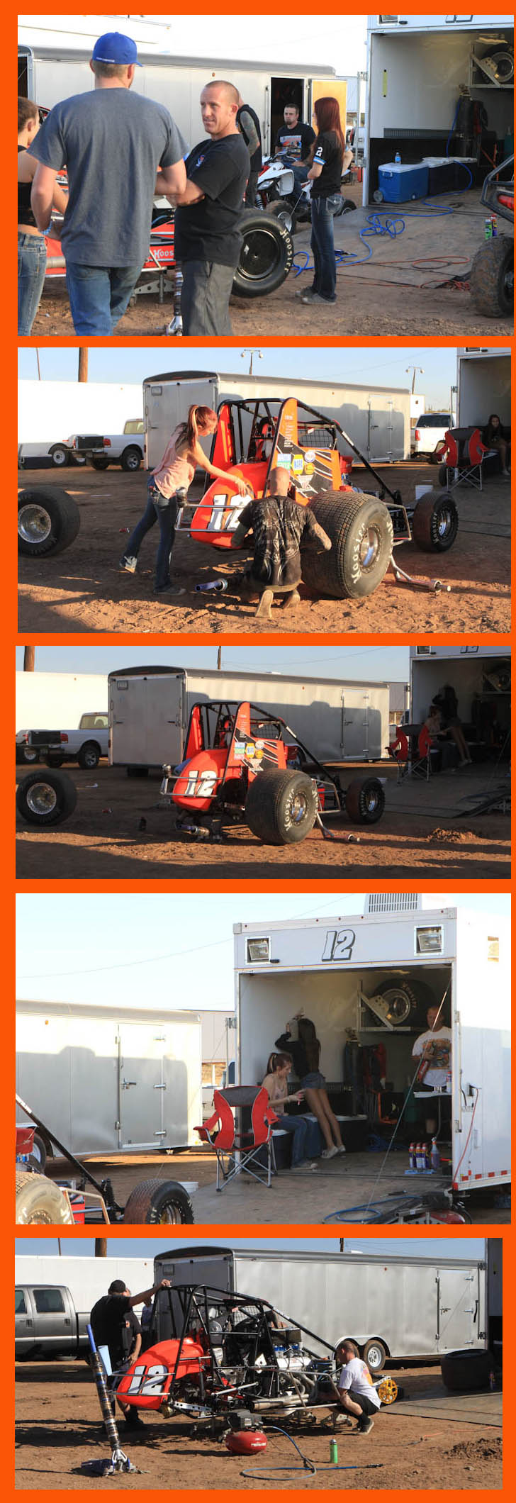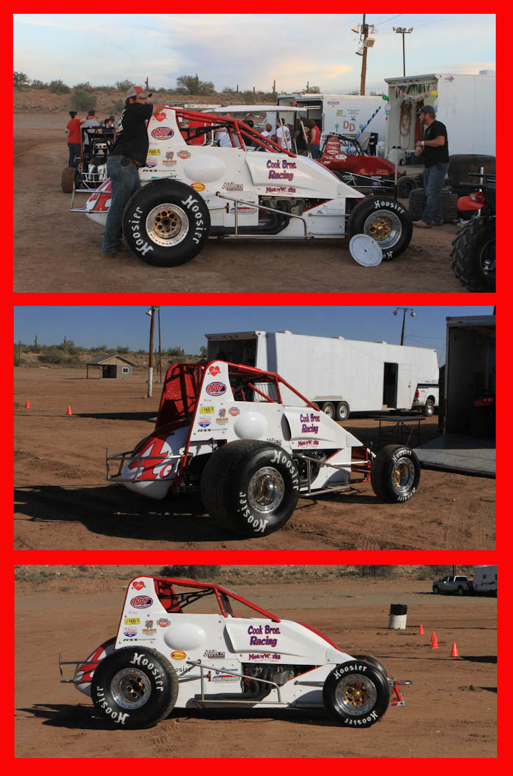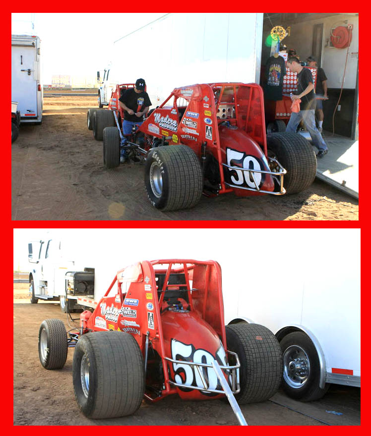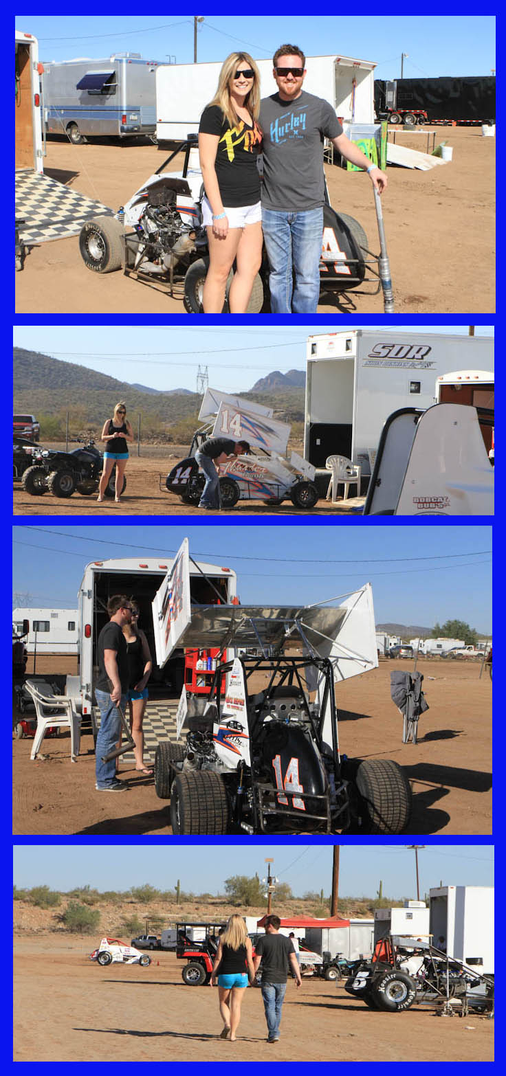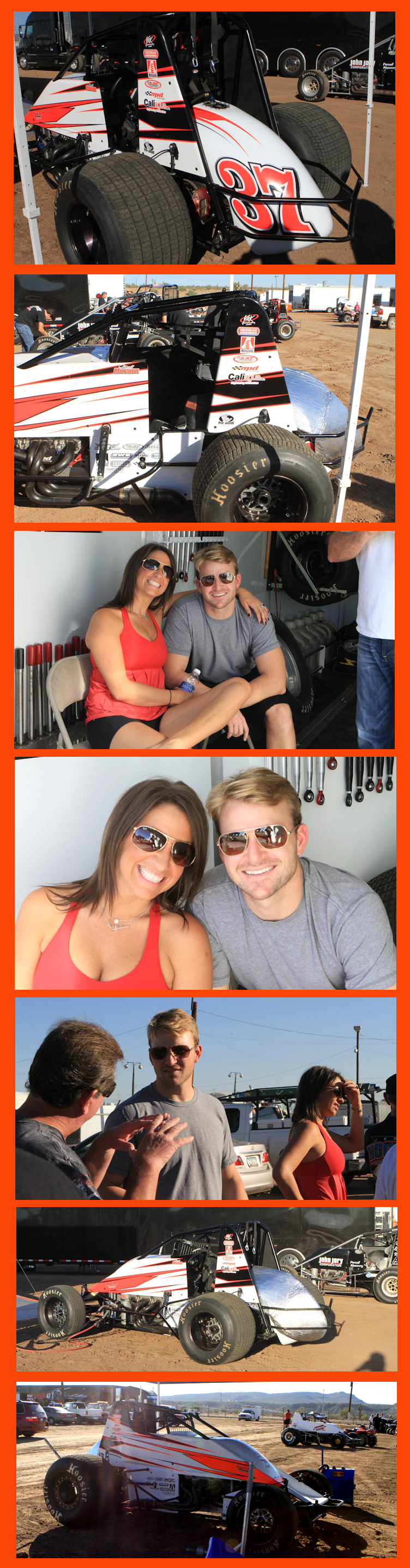 Dustin Cormany dominated the mini-sprint mains both nights. He won the wing and non-wing features. His lady Nancy worked with him in the pits alll weekend. His motor is a 600 CC Suzuki, half the size of the California ightning Sprints, but he could do well with them if he travelled and got 600 more CC's.