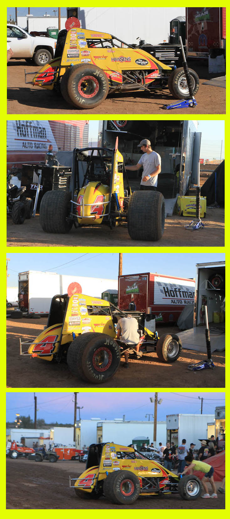 Matt Mitchell's new car is bright and will be easier sen on the dark dirt tracks. He had a so so weekend dialing the new one in.