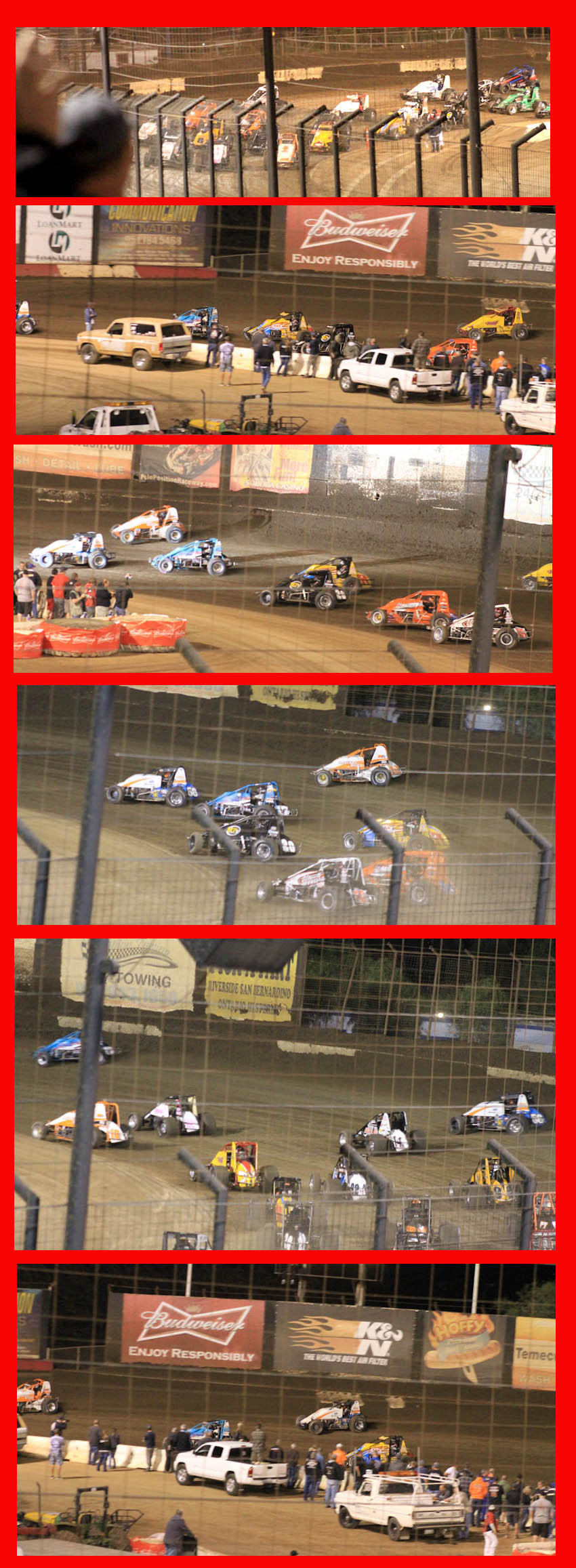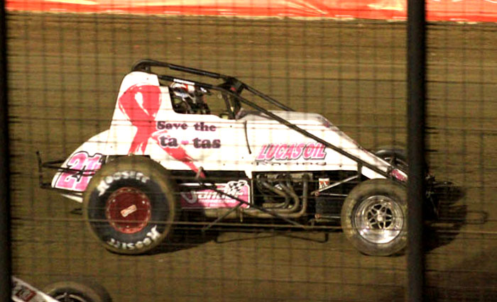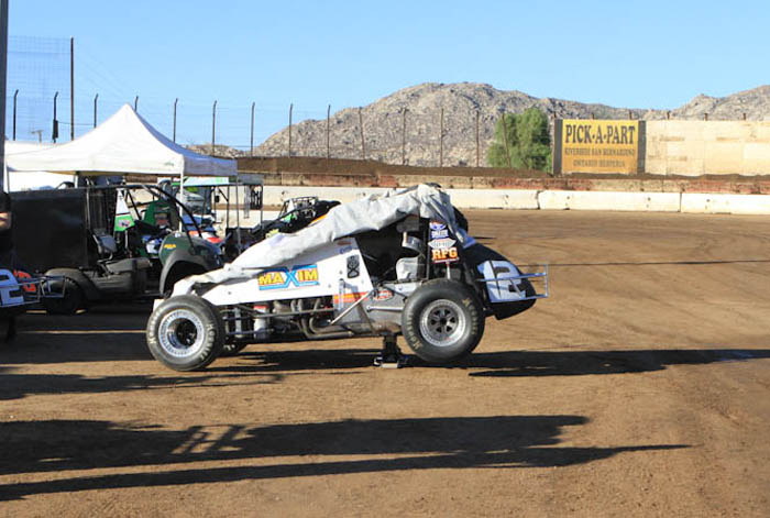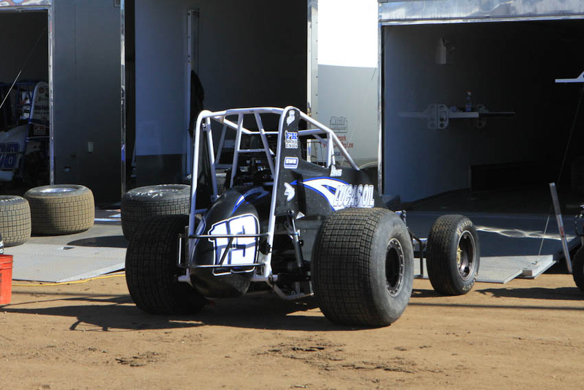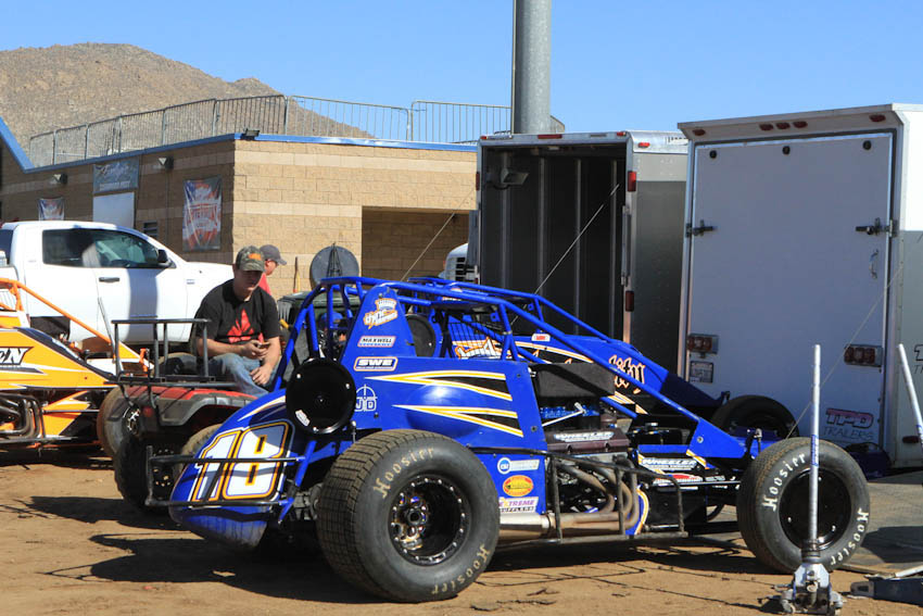 R J Johnson came from the Arizona desert to race. He ran 6th in the feature in the # 77 car Michaels car.