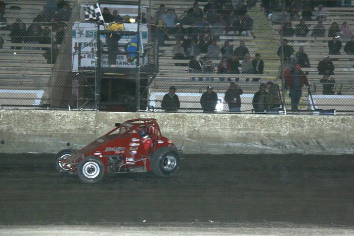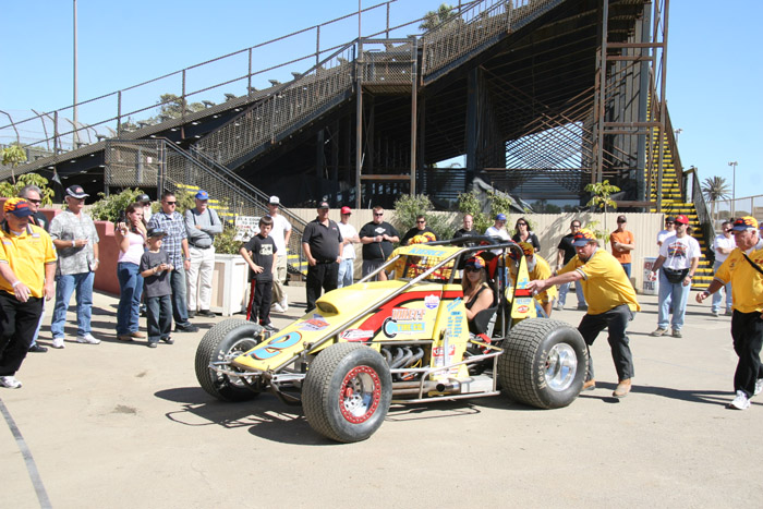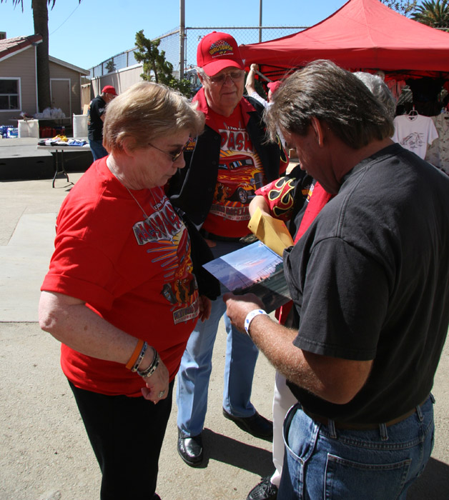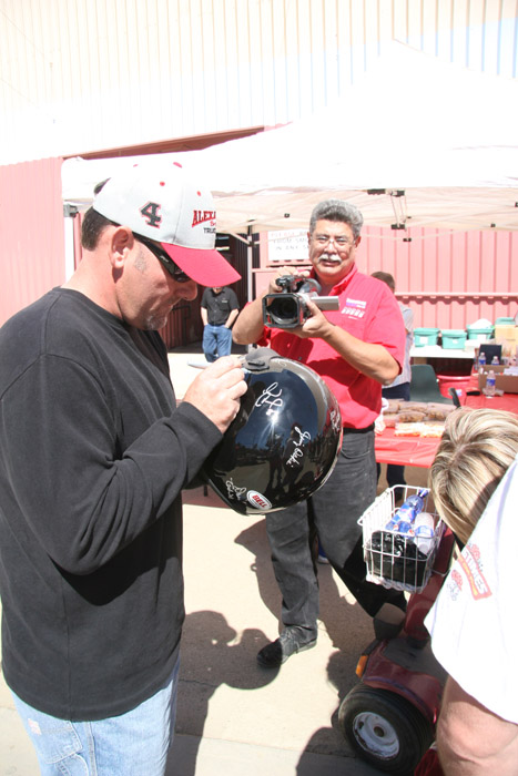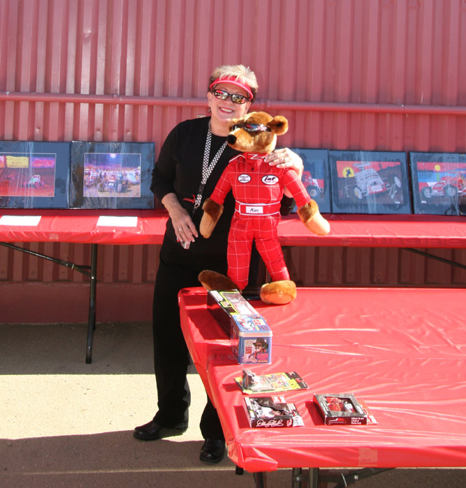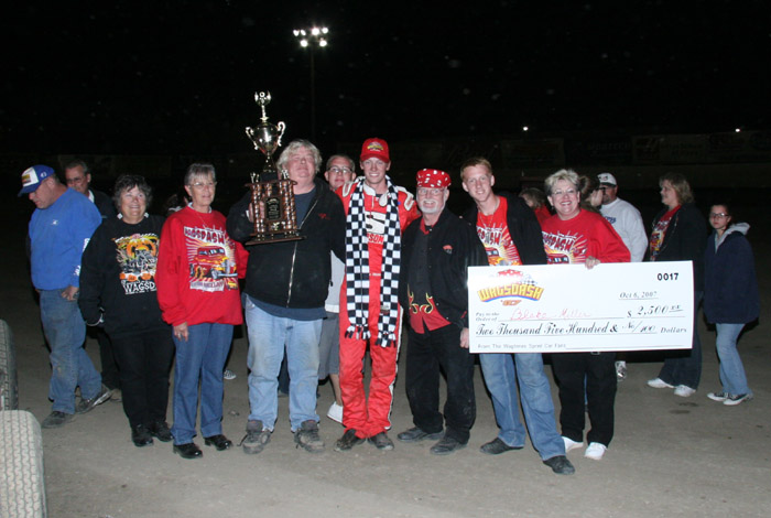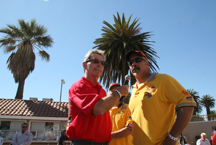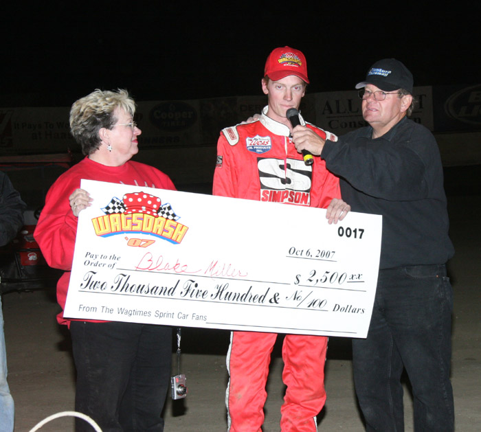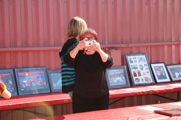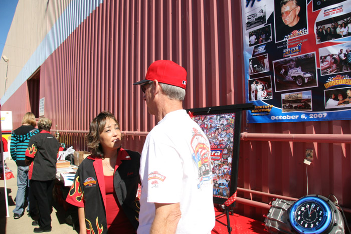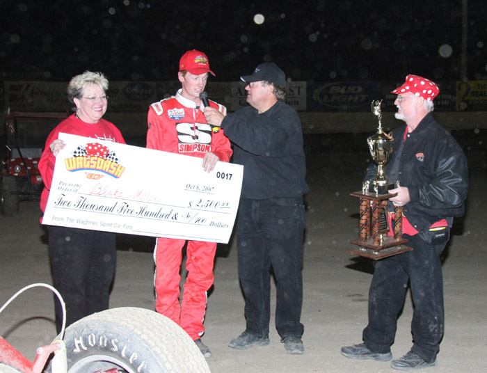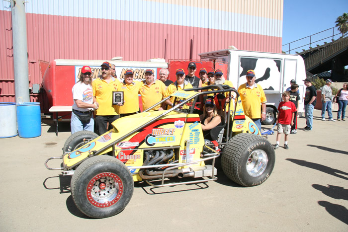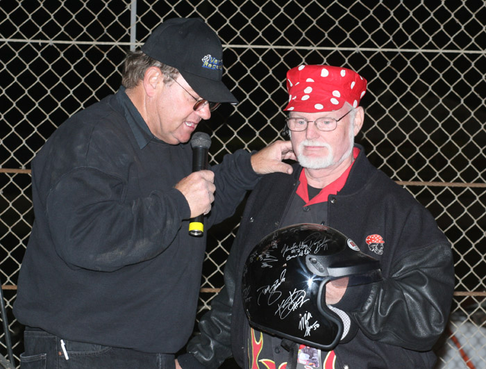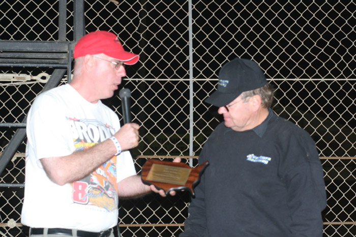 Tom Schmeh of the National Sprint Car Hall of Fame presents Jim Naylor with the 2006 Promoter of the year Award.