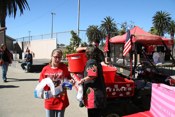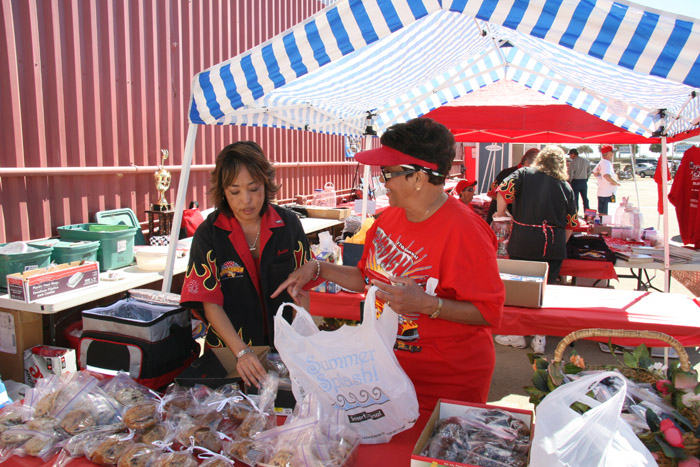 Julie and Hailey having a snack, or testing the bake sale goodies.