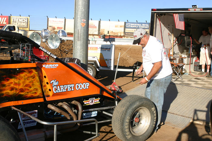 Eric Severson brings an orange # 11 to Perris. Jim Cherry of Carpet Coop fame owns the car.