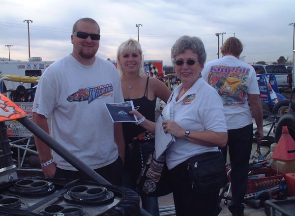 Dave Darland visits with Alex Pruitt and Ellen Ellis before his night on the track in the Pruitt car.