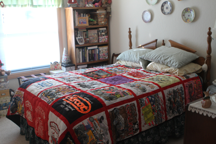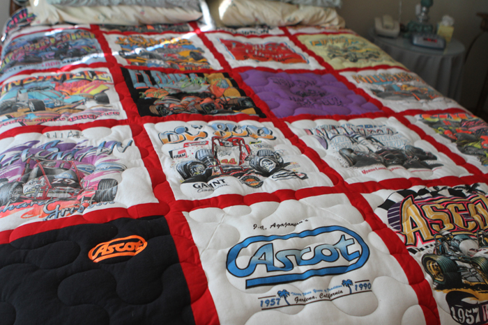 A sprint car quilt in "our" room where we slept. It felt different than a regular quilt.