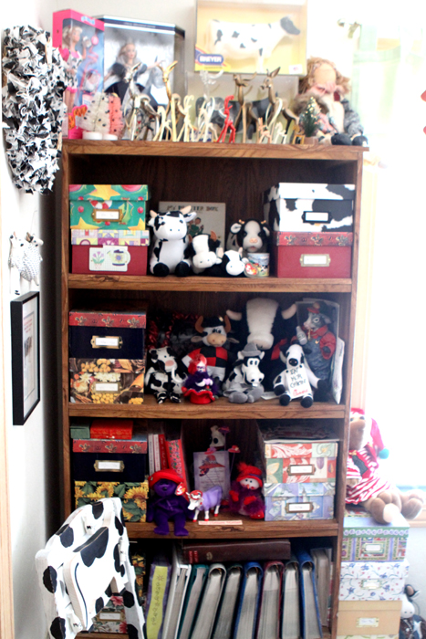 Two things in this picture stand out. Red and white polka dots and a cow, bith big in the DIls life.