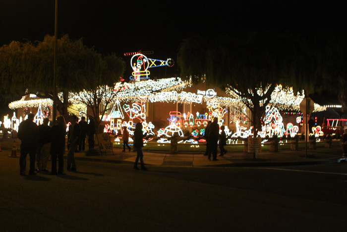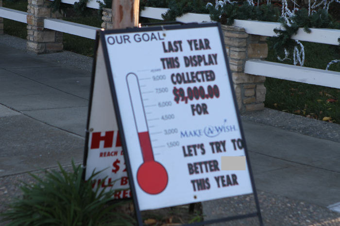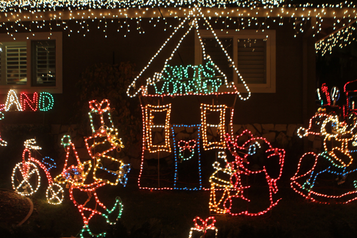 This is the front of the Pusateri home where each year they light it up for the Make A Wish Foundation. There are 66,000 lights that go on for three plus weeks near Christmas and it is complete with animation, singing Santa's and even a few nights of Santa CLaus and Mrs Claus with two elfs to greet the kids. Pretty impressive as the annual lighting raises a lot of money for the Make A Wish Foundation, LAST YEAR NEARLY $ 10,000! Dave, Muriel and many helpers make tthis happen every night for kids who come from all over to see the awesome specticle.