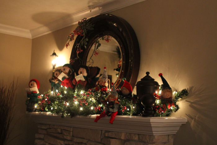 The elf on the left shoots the packages with a canon up to the top where the elf stuffs them down the chimney. It is animated.