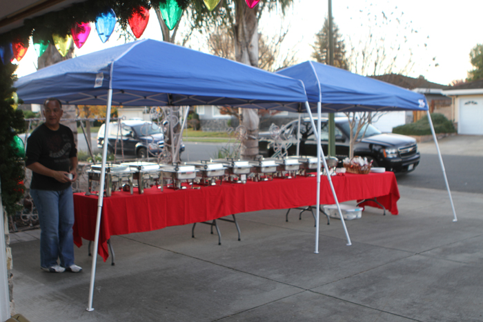 Dale getting ready for the guests to come and eat. he was a working ool gtting the food all out for the feed.