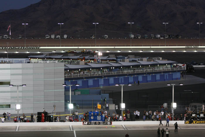 You can see the pit areas of the drivers along the back wall. They were spaced out so everyone had room to come in from the racetrack without any worries.