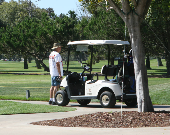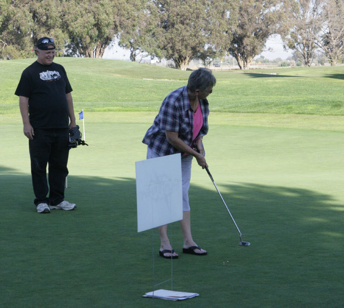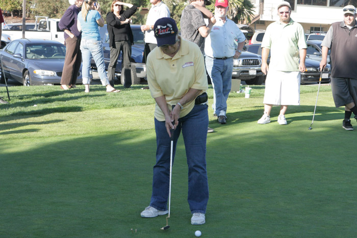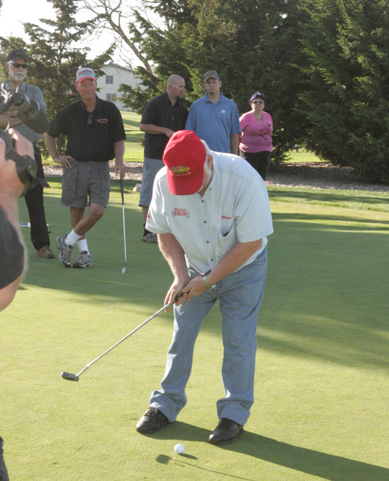 And here comes VRA driver Charlie Butcher and knocks it dead. Out of the 50 wanna be putters, only 2 made the first shot and earned a second one. Neither Charlie or me made that one, so the $5000 was safe again this year.
