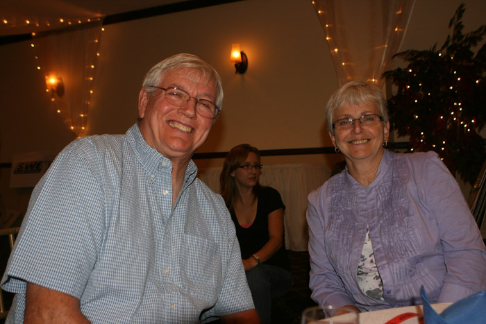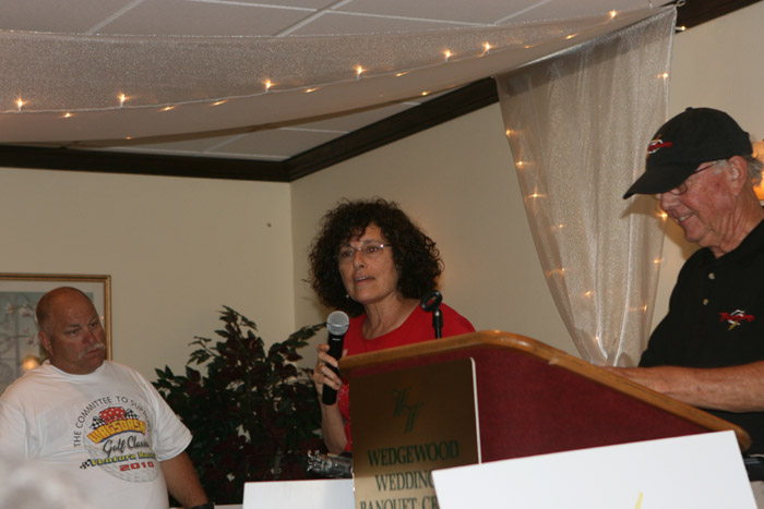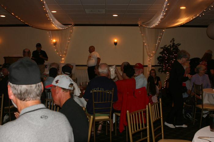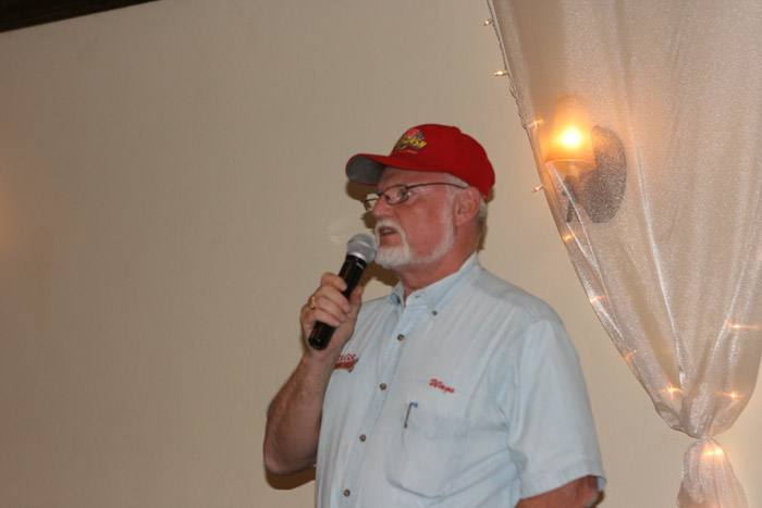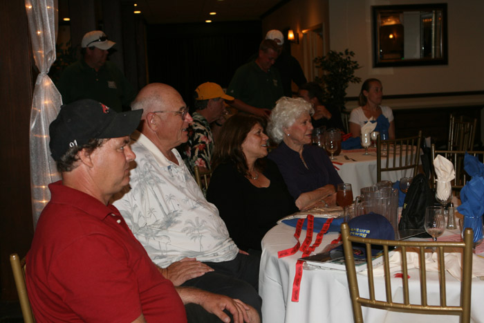 Now for the golf banquet. Tom looks on as Jimmy Crawford speaks.