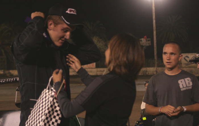Brandon Thomson gets a kiss after finishing 2nd in the Wagsdash.