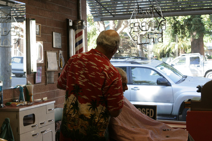 This year Mrs Wags has been missing a lot of races because she works full time and the long trips are tough on her. On this trip to and from Calistoga she shot a lot of different stuff besides the racing, so I am going to post a little bit of everything here. The trip went straight from Vegas to Harris ranch where we had lunch with the Kittle Motorsports group and then went on to the track where they got their rig parked and then we headed off to dinner in a Calistoga Italian restaurant before heading to Don "The" Barber's house where we would stay the weekend. The first thing we did Friday morning was go visit the man at his barber shop. Don't ask why it's named Art's Barber Shop, it's been that way for the near 30 years I've known him.