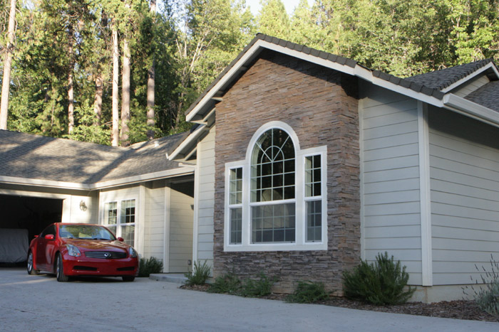 On the road we go after the racing to pick up the Wagsdash trophy from Trophy Dave. He and wife Muriel have a weekend pad near Placerville. They go up there on the weekends to get away from San Jose. You be the judge, is this a pad or a palatial woodsy home? This is the front.