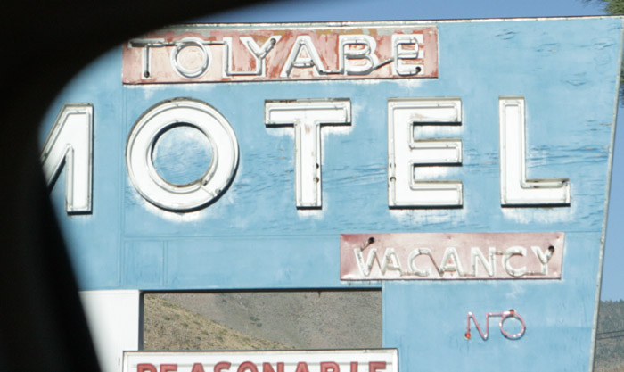 Okay on the road again we go. Dave told me about this two lane road with no traffic and a faster, shorter way to get to the Nevada border. Only one problem: no gas stations and after driving nearly 3 hours and watching the reserve fuel light come on, we had to recalculate. After checking a motel that was still open, our options were slim and maybe none. It was 30 miles to the next town where gas was available, and a closed station nearby, so we took off. That made us a tad nervous, so we backtracked to the little town of Walker and checked into the BATES motel. At least it looked like one. Only 11 rooms and the insides were knotty pine and a little spooky, but what other choices did we have until 6 am and the gas station opening in the morning? No phone in the room, no cell or internet service, but they had directv! Also the only dinner was a cup of noodles, the pour in hot water kind, but we passed. We made it to morning and left the place to gas up at $4.09 a gallon for the cheap stuff and on down the road to breakfast 30 miles away where there were plenty of Gas statiopns. So we went on home with another "can you believe the luck" fun adventure.