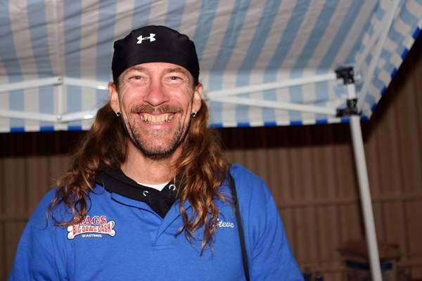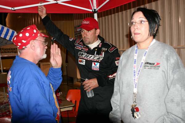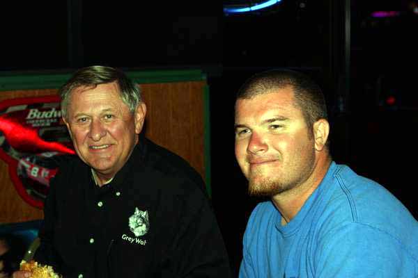 Wags is in conversation with the Big Dawg Dash winner while daughter, Tracie, gets ready to bolt for the motel and miss the rest of the evening.